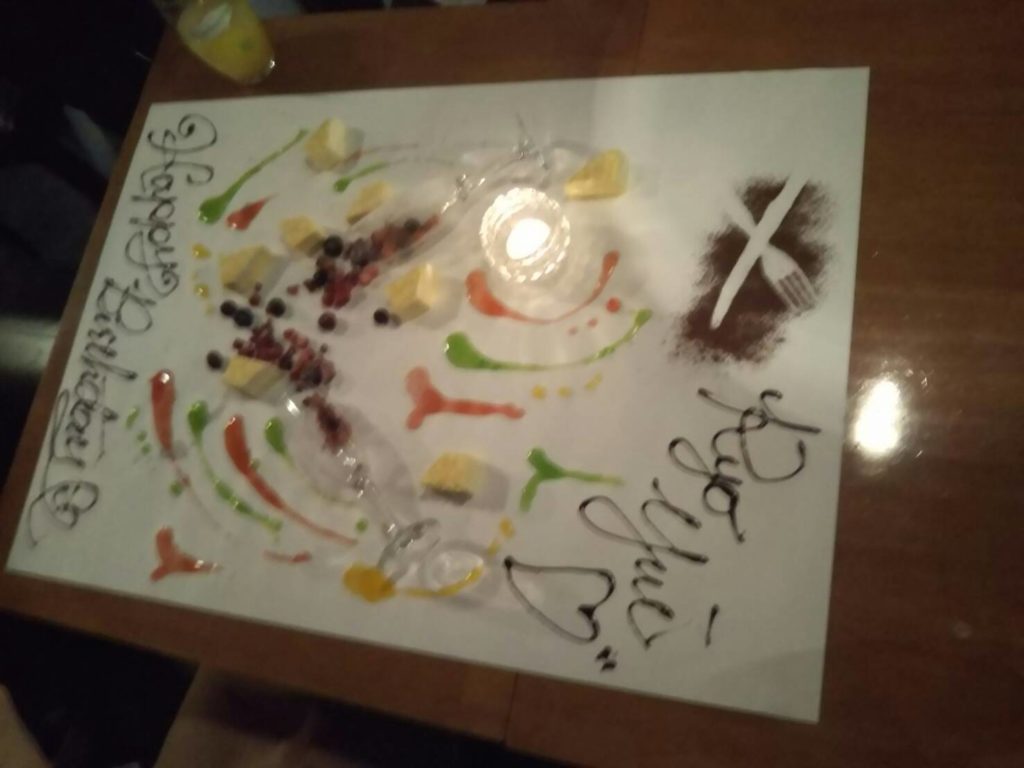 テーブルの上に広幅用紙を広げた時には「今から鉄板料理でも来るのかな」という勝手な想像をしてしまいました。油が飛び散るような料理が来るかと思ったからです。