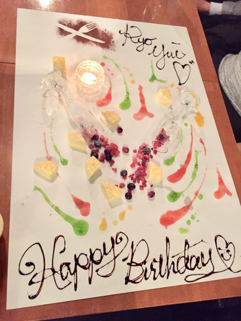 レストランでのサプライズはケーキが登場するだけというのが一般的でしたが、ちょうど飽き飽きしてたところにこのような誕生日デザートを発見できて良かった!