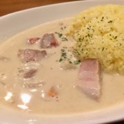 さらに、中には賽の目状にカットされた食パンが入っていて、それをフォークで刺してカレーと絡めて食べるんです。